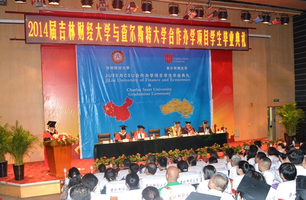 本网讯(学生记者 李战武 林绵橄)6月6日上午,Beat365国际交流学院在图书馆报告厅隆重举行中澳合作办学项目2014届学生澳方学位授予仪式暨毕业典礼。澳大利亚查尔斯大学校长Lawrence Willett教授、副校长He...