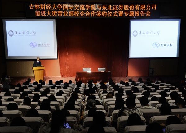 2016国际交流学院与东北证券前进大街营业部校企合作签约仪式暨专题报告会举行