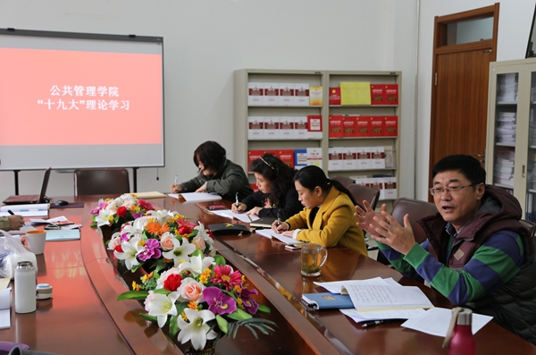 本网讯(公共管理学院 供稿)10月25日下午,公共管理学院召开党的十九大精神专题学习会。本次会议由公共管理学院党总支书记李俊生主持,学院全体教师参加了此次会议。 在会上,李俊生书记对十九大的内容及精神...