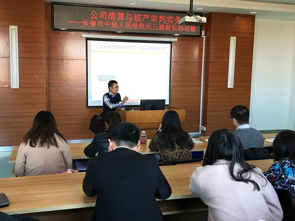 2017长春市中级人民法院民三庭庭长孙召银来法学院作报告