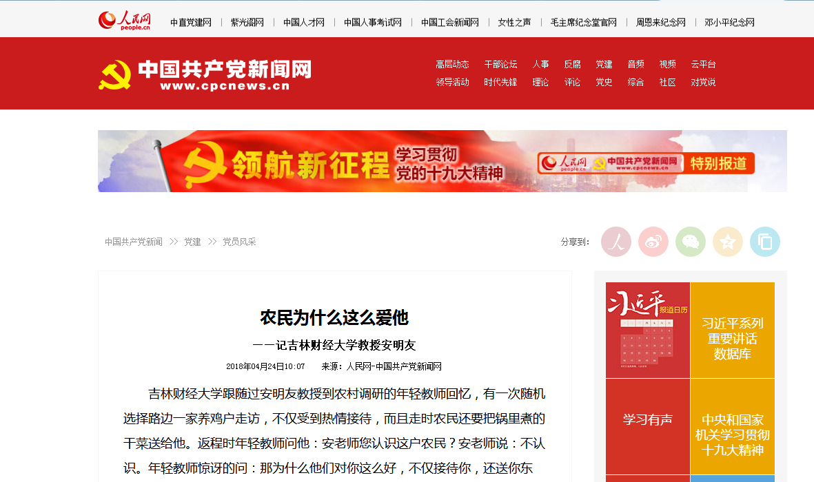 2018【媒体财大】人民网-中国共产党新闻网报道Beat365税务学院安明友教授事迹