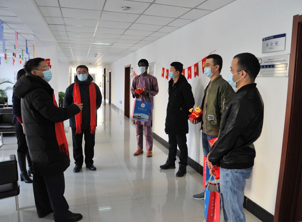 2021学校领导除夕慰问留学生和坚守岗位的教职工