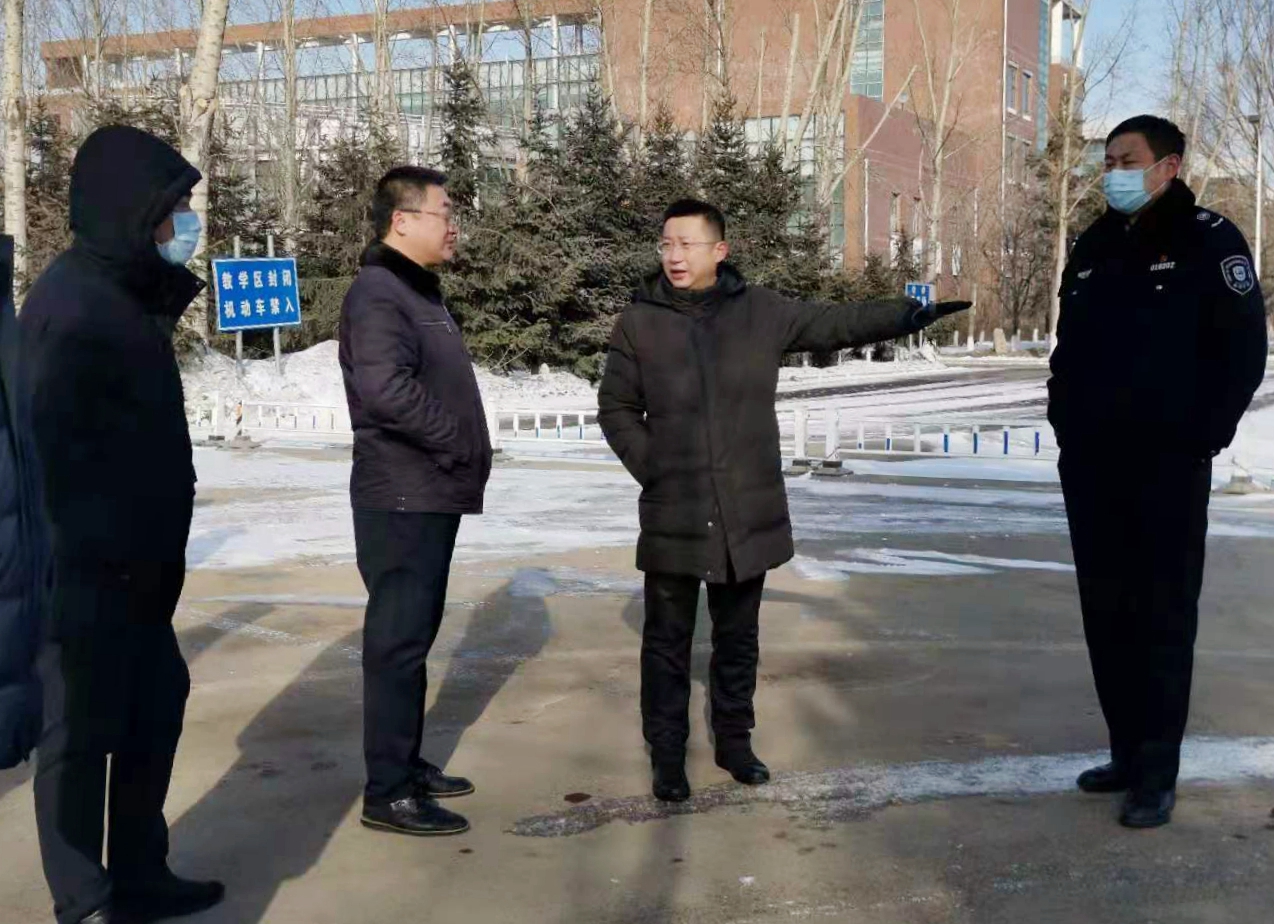 2021学校领导带领后勤和保卫等部门相关人员检查新学期开学各项准备工作和疫情防控工作
