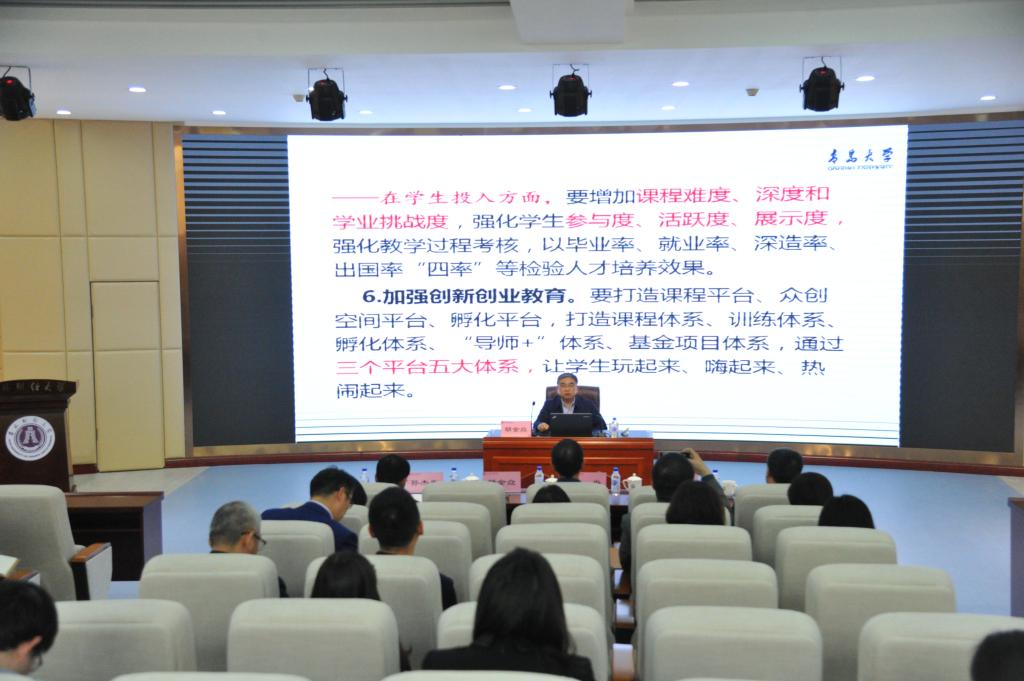 本网讯(科研处 供稿 摄影 杨舒淇 马子涵)5月13日下午,青岛大学党委书记胡金焱教授应邀做客“吉林财经大讲堂”,在吉林财经大讲堂报告厅作了题为“在新一轮教育教学改革中创新高校人才培养”的学术报告。会议由校党委副书记、校长孙杰光主持,校党委书记马尚、副校长刘鹤及各学院院长、教学副院长,教务处、科研处、发展规划与学科建设办公室、人事处、教师教学发展中心、创新创业教育学院等部门负责同志和教师代表参加了报告...