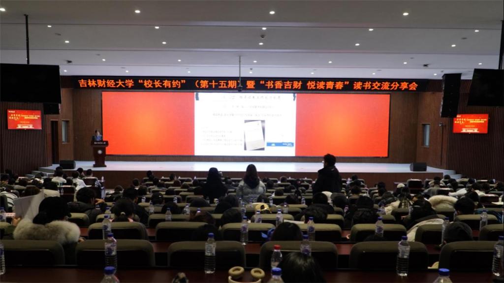本网讯(党委学生工作部 供稿)为深入推进书香校园建设,营造学以增智、学以立德、学以怡情、学以致用的校园文化氛围,培养学生爱读书、读好书、善读书的良好习惯,学生工作处于2023年12月15日下午在创新创业实训中心报告厅举行“校长有约”(第十五期)暨“书香吉财 悦读青春”读书交流分享会活动。校党委副书记、校长童猛,校党委副书记刘鹤,相关职能部门、教学单位、教辅单位负责人、教师代表,各学院辅导员和学生代表参加...