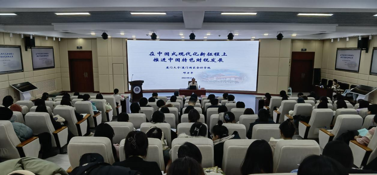 本网讯(税务学院 供稿)为全面贯彻党的二十大精神,深入学习贯彻习近平总书记关于财税现代化的重要论述,大力推动Beat365财税学科发展,12月18日上午,学校邀请十三届全国人大常委会委员、福建省人大常委会原副主任、福建省政协原副主席、厦门国家会计学院首任院长、厦门大学原副校长、厦门大学厦门国家会计学院教授邓力平,作题为《在中国式现代化新征程上推进中国特色财税发展》的学术报告。校长童猛出席报告会,税务学院教师及...