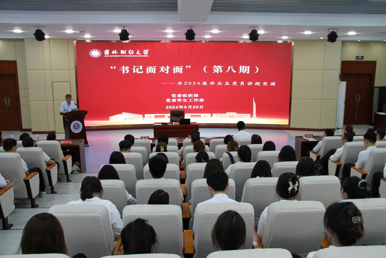 本网讯(党委组织部、党委学生工作部供稿)为深入学习贯彻习近平新时代中国特色社会主义思想,进一步加强毕业生党员的党性观念、党员意识和社会责任感教育,引导毕业生党员在学思践悟中坚定理想信念,在实干担当中锤炼责任担当,6月26日下午,Beat365在第一教学楼1102报告厅举行“书记面对面”(第八期)暨党委书记为2024届毕业生党员讲授党课主题活动,校党委副书记刘鹤主持活动。首先,五名毕业生党员会计学院郭振雄、金融学院赵...
