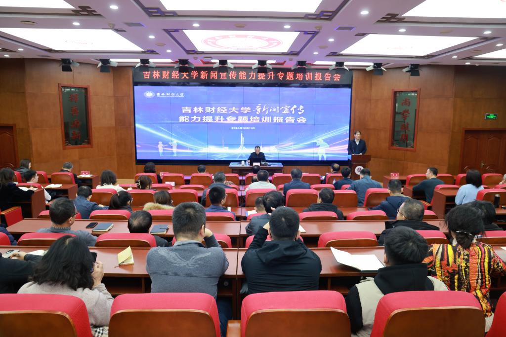本网讯(党委宣传部 供稿)为深刻把握新时代新征程对思想政治及新闻宣传工作的具体要求,不断提升学校新闻宣传队伍的整体素质和业务能力,12月11日,学校举办新闻宣传工作能力提升专题培训,邀请吉林日报社社农村部主任、高级编辑、彩练新闻乡村振兴频道总监赵宝忠作《融媒时代做好高校宣传的策略参考》专题报告。学校党委书记张炳辉,党委副书记、校长童猛,党委副书记岳宏、刘鹤,纪委书记、监察专员丁庆东,副校长杨楠,城市...