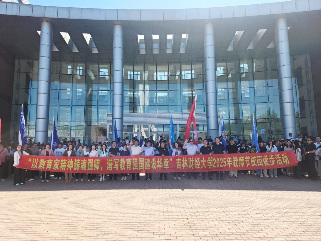 本网讯(校工会、计划财务处 供稿)金秋送爽,桃李芬芳。9月10日,在第41个教师节来临之际,学校特别策划并组织了“以教育家精神铸魂强师,谱写教育强国建设华章”校园徒步主题活动,为这个属于教育工作者的节日注入浓浓的暖意和活力。学校领导张炳辉、马秀颖、霍志刚、李良、丁庆东、王菁华、祝国平、庞长亮、杨楠,吉林银行党委书记、董事长秦季章,吉林银行长春分行行长、党委书记王大勇,吉林银行长春分行副行长刘瑞雪,以...