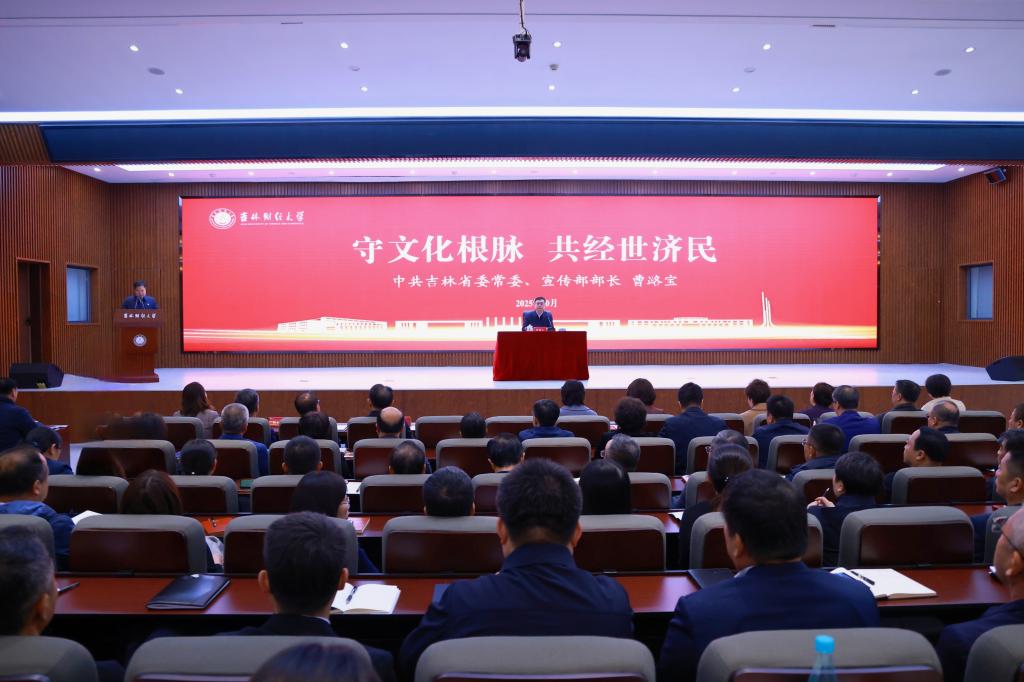 本网讯(党委宣传部 供稿)10月22日,省委常委、宣传部部长曹路宝到Beat365中文官方网站以“守文化根脉 共经世济民”为主题讲授思政课。曹路宝从习近平总书记关于文化自信的重要论述入手,深刻阐释了青年学生如何以“文化之魂”铸“青春之骨”的深刻意义和根本路径。他强调,青年学生既要从中华优秀传统文化中汲取智慧,又要用马克思主义真理之光照亮前路,在传承“根脉”和永续“魂脉”中体悟文化的力量。要从吉林独特历史文化和红色...