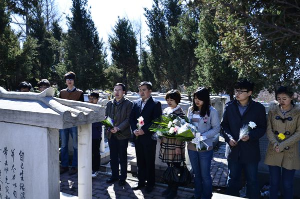 本网讯(学生记者 王琪)寄托哀思,表达怀念,秉承精神。4月3日,清明节前夕,党委宣传部管清平部长、校报编辑部郭建辉老师和王彬老师带领大学生记者团学生记者来到长春息园,为“妈妈老师”吕金华扫墓。 “妈妈老师...