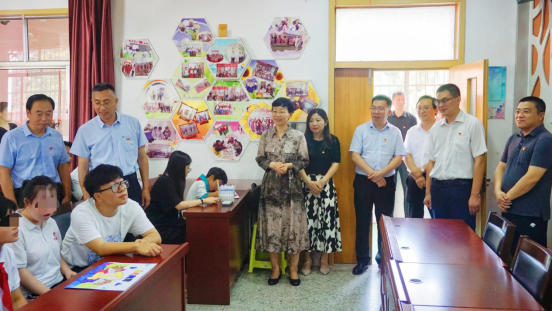 孙晓筠实地察看了长清区特殊教育学校的校史馆和教学环境,详细了解学校创办历史、学生身体状况、师资力量、教学安排等情况。她与副院长韩世春走进课堂,与现代手工艺术学院学生志愿者们一起陪孩子们画画、唱歌,通过亲切的交流互动,了解孩子们的生活和学习情况。