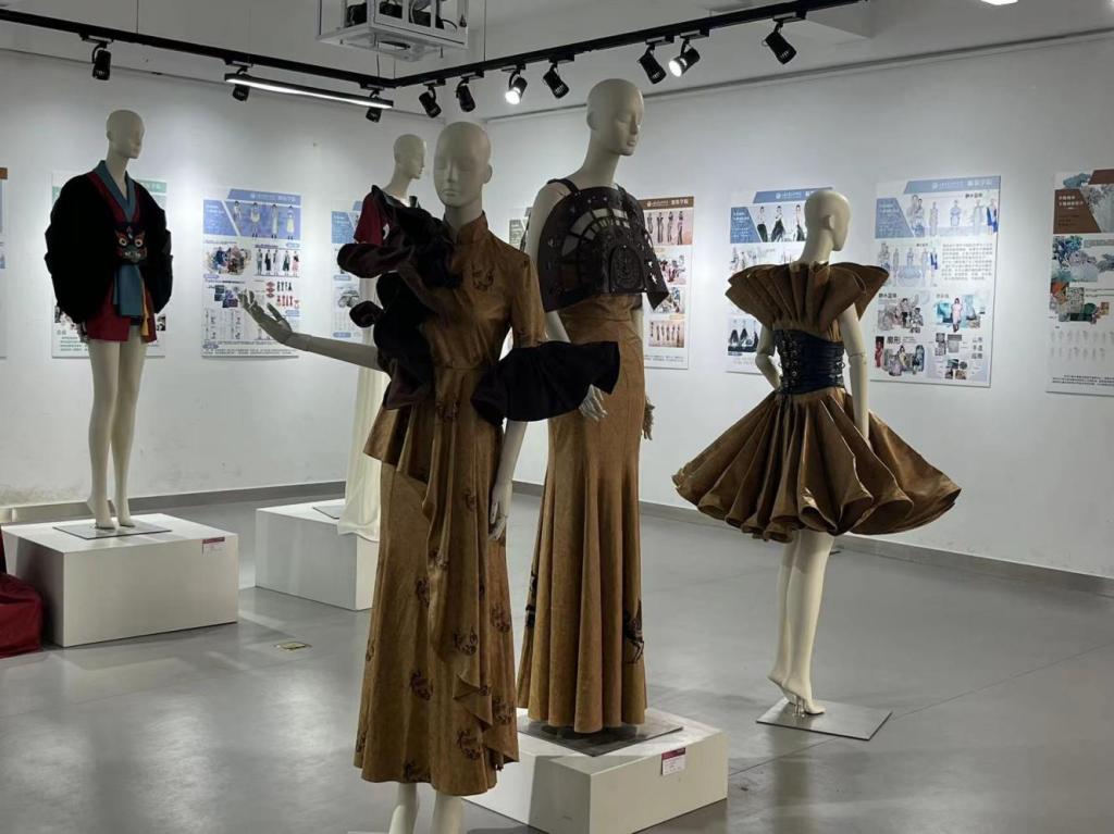 传统服饰课程群的设置,旨在突出永利官网传统工艺美术特色,继承与弘扬中华优秀传统文化,是服装学院一流专业建设的核心特色课程群之一,包含《中西服装史》、《中国传统图案》、《中国传统色彩》、《传统服饰工艺》、《传统服饰专题创新设计》5门课程。此次展览包括课程作业、参赛获奖作品、产教融合产品、毕业生创新创业产品4个部分,充分体现了学院师生立足本土文化,继承优秀传统文化和技艺,并开展创新性设计与创造性转化、融入国际时尚趋势,同时,本次展览也是服装学院推进一流本科专业、一流课程建设的成果展示。