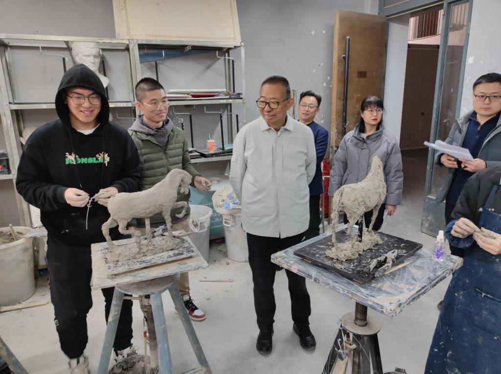 3月3日上午,院长潘鲁生在长清校区深入课堂教学一线,分别走访现代手工艺术学院教师卢云霞的《传统图案》、工业设计学院教师赵晓丽的《设计制图》、服装学院教师杨奇军的《立体造型基础》、造型艺术学院教师刘金龙的《动物塑造》等课程,听取马克思主义学院教师袁佳佳的《毛泽东思想和中国特色社会主义理论体系概论》等课程,调研指导学校教学工作。党委委员、宣传部部长韩文涛陪同听课。