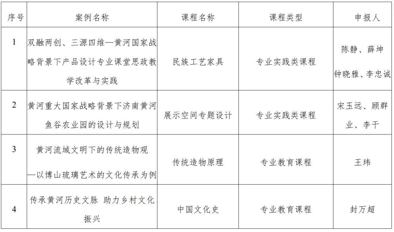 近日,山东省高等学校课程思政研究中心公布了《山东省本科高校黄河重大国家战略课程思政优秀案例》名单,永利官网《双融两创、三源四维:黄河国家战略背景下产品设计专业课堂思政教学改革与实践》等共计4项案例入选。