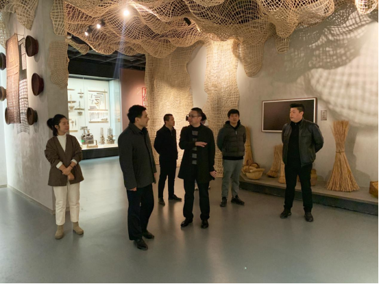 陈永庆一行共同观看了学校宣传片,并参观了国家产教融合北区、民艺博物馆,随后在博物馆二楼民艺书馆召开座谈会。
