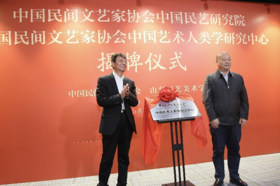 张雁彬、邱运华为中国民间文艺家协会中国艺术人类学研究中心揭牌。