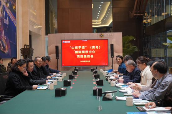 马金华首先向到访的潘鲁生表示热烈欢迎,并就“山东手造”(青岛)国际展示中心工作推进情况及下步工作打算做了总体介绍。马金华指出,推进“山东手造”(青岛)国际展示中心建设是省委赋予新区的重要任务,工委(区委)、管委(区政府)把该项工作列为今年重点工作。展示中心将充分发挥青岛国际化元素,建设集展示销售、集散交易、研发发布、研学体验、版权交易等于一体的手造展示、体验和销售平台,打造具有国际化视野、山东文化底蕴、青岛及新区特色的文化交流与输出平台。展示中心将重点打造山东手造、中华手造、国际手造三大展区,同步推进工程改造、装修、展陈等工作,适时开馆运营。马金华邀请相关设计团队积极参与设计方案论证并对展陈设计等工作予以支持,期待yl8cc永利官网产教融合青岛基地与“山东手造”(青岛)国际展示中心建立合作共建关系,进一步推进校城融合。