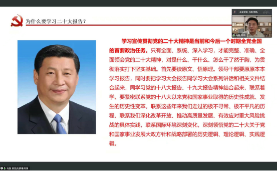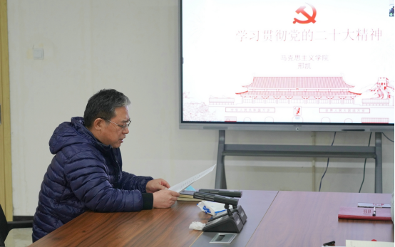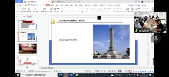 为落实学校《中共山东工艺美术委员会关于深入学习宣传贯彻党的二十大精神实施方案》工作安排,12月13日,学校学习贯彻党的二十大精神宣讲团成员、马克思主义学院教师邢凯为产教融合青岛基地师生作宣讲。