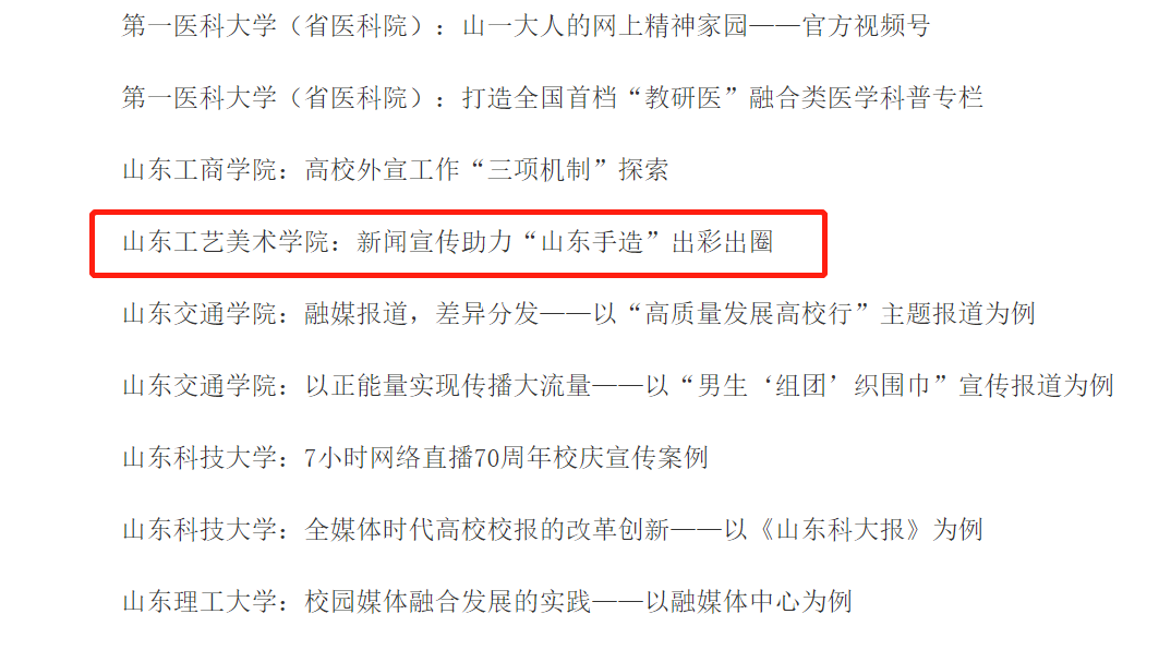 近日,山东省教育厅公布了全省教育系统新闻宣传工作优秀案例评选结果,永利官网报送的《新闻宣传助力“山东手造”出彩出圈》案例成功入选。