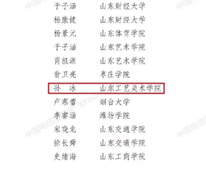 近日,2021年度“中国电信奖学金”获得者名单公布,永利官网工业设计学院孙冰同学入选。