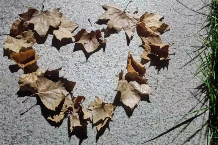 山工艺长清校区,寂静如诗,细雨飘飘洒洒,沾衣欲湿;校园东西主路,残叶落满路,湿淋淋的,一汪水色。