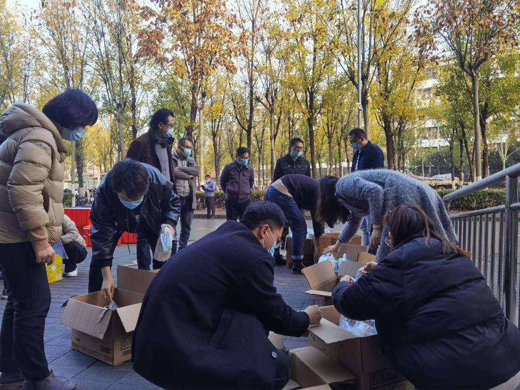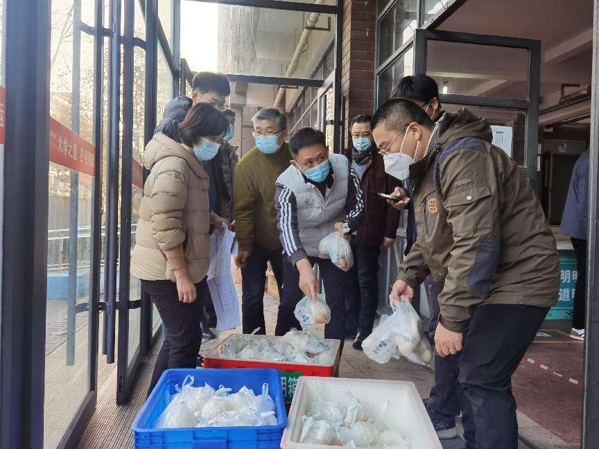 当朝霞开启崭新的一天,清晨6:30,教工志愿者们早早按照分组分工、到岗到位,开始为早餐运送分发做着准备。