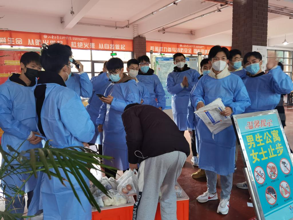 疫情就是命令,防控就是责任。学校疫情防控应急处置预案启动以后,按照属地疫情防控措施建议,同学们宿舍内实行静止管理。为保障全校6424名在校生的日常用餐及后勤保障工作,学校全体教职员工,包括学校领导、机关干部、专业教师、一线职工,连夜成立五个“送餐志愿者”工作组,覆盖到每一栋学生宿舍,确保学生们在封闭管理之后,能够吃上暖心的“第一餐”。