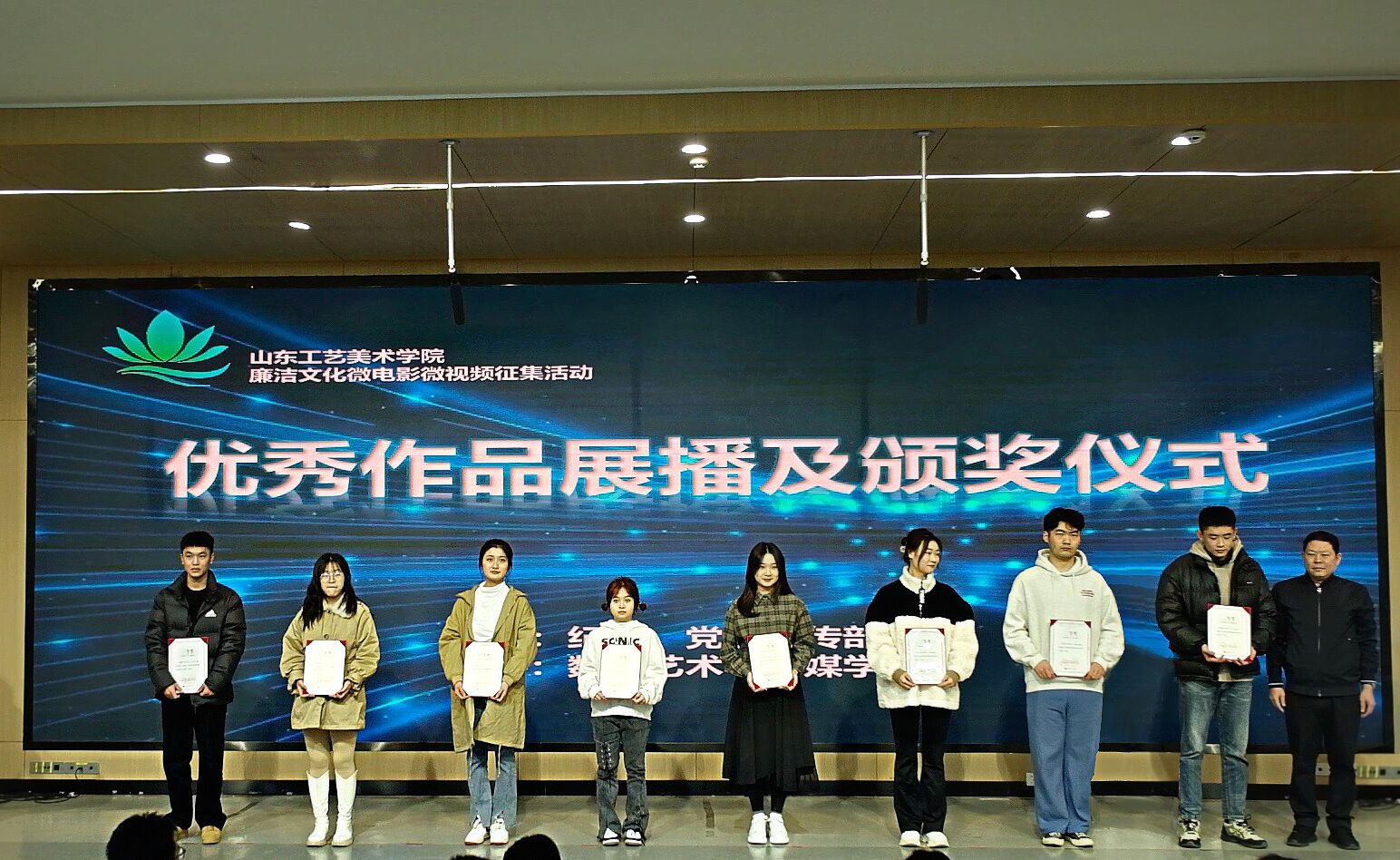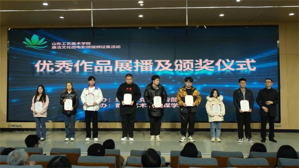 本次活动由学校纪委、党委宣传部主办,数字艺术与传媒学院承办。微电影微视频创作以廉洁文化为主题,充分挖掘中华优秀传统文化、山东革命文化、社会主义先进文化中的廉洁元素,以项目教学的形式,将廉洁文化元素融入到专业教学中,充分发挥专业优势,用作品生动诠释廉洁文化的丰富内涵,用流动的影像表达主题,通过影像的感染力提升廉洁文化的感召力,打造特色课程思政。历时两个月,参与师生70余人,最终评出校级优秀作品16部,其中4部推荐省级评审,作品《戏影》被省纪委监委选中推选至中央纪委国家监委。