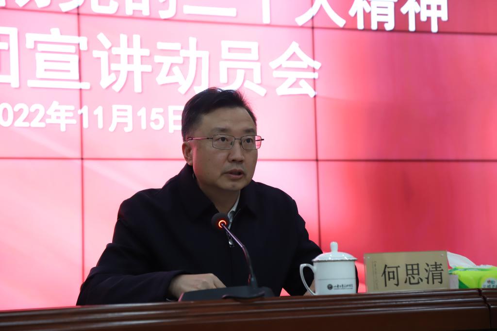 何思清作总结讲话。他指出,学习宣传贯彻党的二十大精神,是当前和今后一个时期全党全国的首要政治任务。成立党的二十大精神宣讲团、对全校进行全覆盖宣讲,是学校党委贯彻落实中央决策部署、省委工作要求和省委教育工委工作安排,推进学习宣传贯彻二十大精神工作落地落实的一项重要举措。