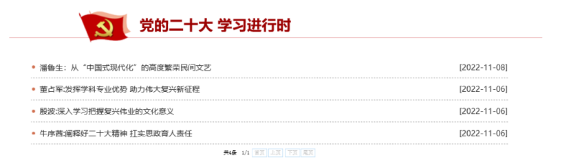 专题网站开设“学习宣传贯彻党的二十大精神”“学习二十大 我们在行动”“党的二十大 学习进行时”“欢庆二十大 勇担新使命”四个栏目,全面宣传报道学校各级党组织、各部门单位学习宣传贯彻党的二十大精神情况,集中展示学习宣传贯彻党的二十大精神的特色做法与靓丽风采,及时发布相关学习宣传贯彻相关活动,刊登权威媒体报道和校内外专家学习文章,着力打造全校师生学习宣传贯彻党的二十大精神的“发布厅”和“加油站”。