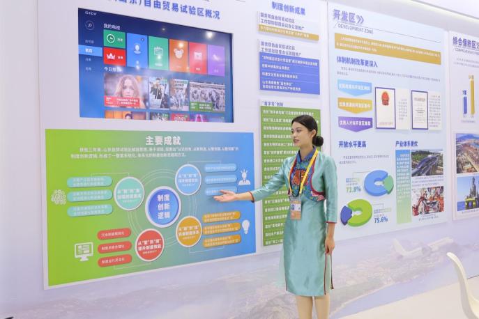 11月5日,由商务部、上海市人民政府主办,中国国际进口博览局、国家会展中心(上海)有限责任公司承办的第五届中国国际进口博览会山东展区在国家会展中心(上海)华丽绽放。其中首次设立的“中国这十年——对外开放成就展”综合展区充分展示了党的十八大以来我国对外开放取得的辉煌成就。