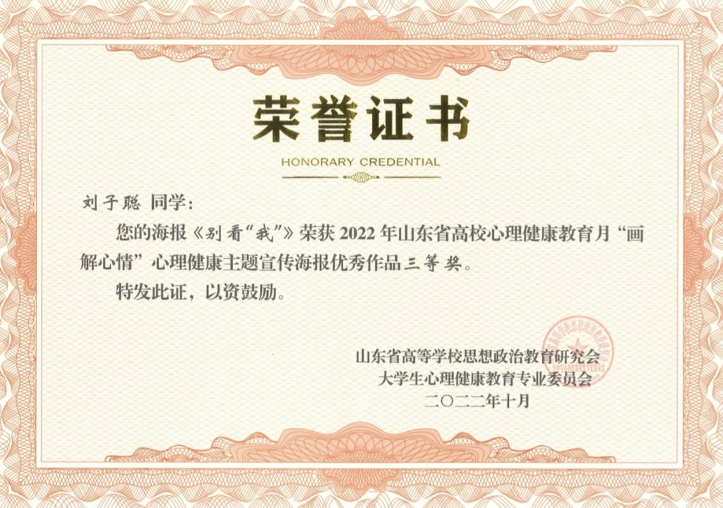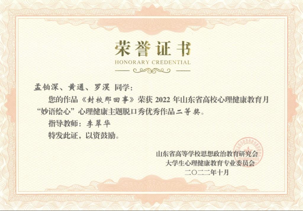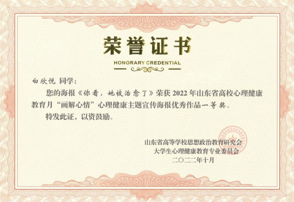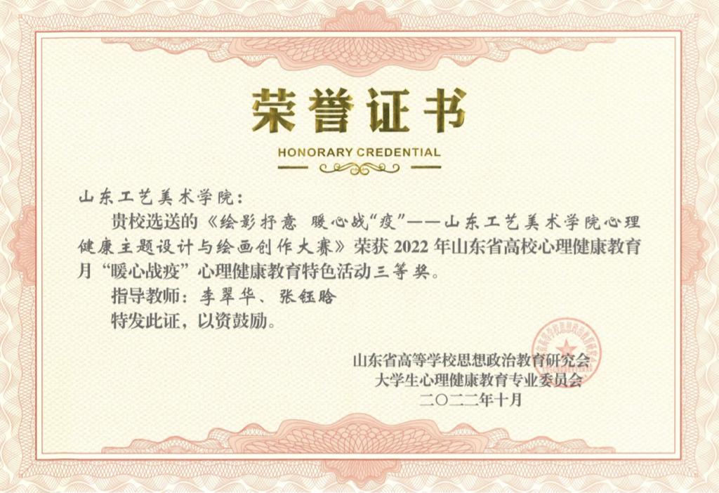 近日,山东省大学生心理健康教育专业委员会公布2022年“‘疫’路同心 温暖守护 健康成长”山东省高校心理健康教育月展示活动评选结果,永利官网再获佳绩,共获得一等奖2项,二等奖1项,三等奖4项。