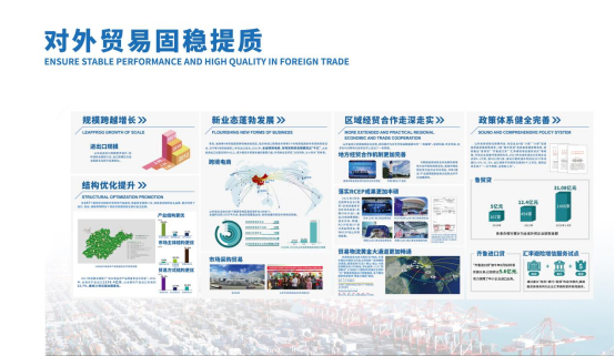 “平台”“贸易”“外资”“走出去”四大板块的展板以山东特色为基础,除图文之外融入柱状图、饼状图、3D地图等可视化视觉表现形式,从而更清晰直观的形式向观众展示山东对外开放的重要数据和主要成绩。