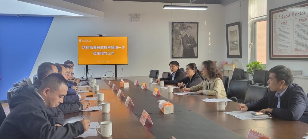 10月26日下午,高青县副县长顾丛丛带领教体局、民政局、投资促进中心、市场监管局等单位相关负责同志来永利官网交流校地合作事宜。副院长董占军在长清大学城中国美客艺术创业园会见考察团一行。