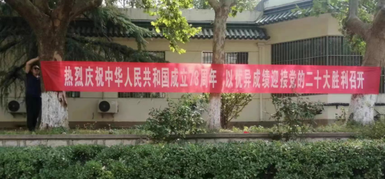 高歌奋进新时代,盛世中华迎华诞。为庆祝中华人民共和国成立73周年,喜迎党的二十大胜利召开,学校积极营造热烈喜庆、文明和谐的校园氛围,为祖国73周年华诞献礼。