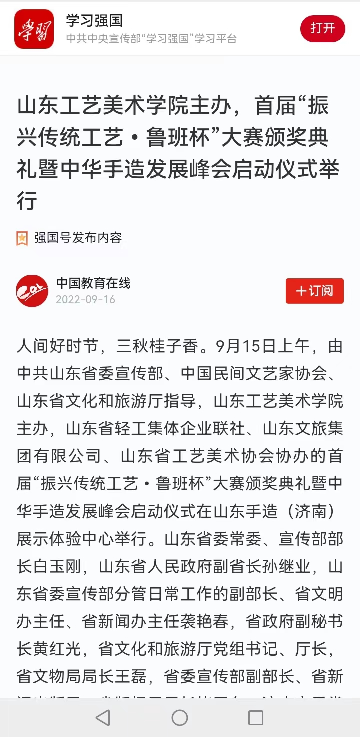 22.学习强国·yl8cc永利官网主办,首届“振兴传统工艺•鲁班杯”大赛颁奖典礼暨中华手造发展峰会启动仪式举行https://article.xuexi.cn/articles/index.html?art_id=6469220729758054042&item_id=6469220729758054042&study_style_id=feeds_opaque&pid=&ptype=-1&source=share&share_to=wx_single