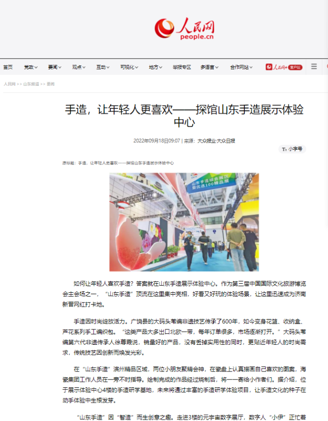 18.人民网·手造,让年轻人更喜欢——探馆山东手造展示体验中心http://sd.people.com.cn/n2/2022/0918/c166192-40128825.html