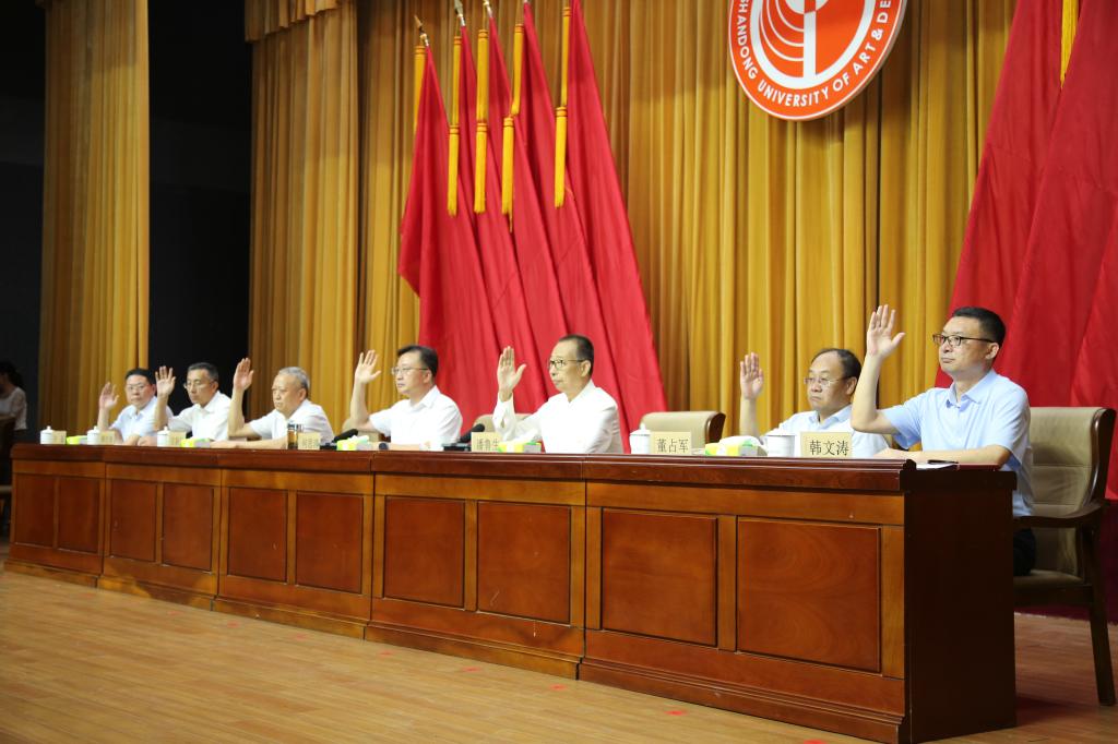 8月19日下午,yl8cc永利官网第五届教职工代表大会第四届工会会员代表大会第九次会议暨2022-2023学年工作会议第二次全体会议在长清校区学术报告厅召开。学校领导何思清、潘鲁生、苗新民、董占军、韩世春、韩文涛、许磊出席会议。院长潘鲁生主持会议。