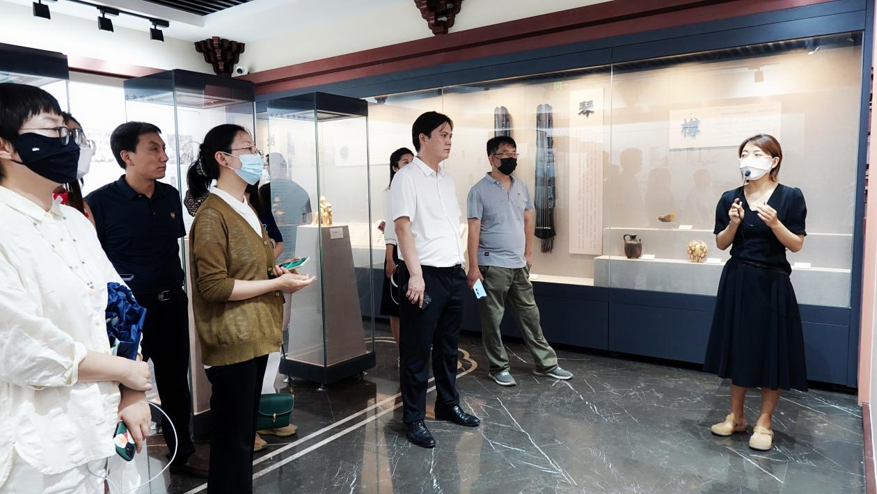 7月18日,调研组赴梁山县进行调研。在梁山县委宣传部分管日常工作的副部长寻传军,县文化和旅游局局长张良喜等领导的陪同下,调研组先后对京杭大运河南旺枢纽梁山段、梁山港、水泊梁山风景区、梁山民俗博物馆、公明坊商业街、贾堌堆农家寨景区、黄河大运河交汇处、雷口村、梁山县博物馆等黄河、运河沿岸文化遗址、民俗景区和文化单位等进行了实地调研。在随后的座谈中,调研组听取了鲁锦等相关企业代表的介绍,并针对手造企业所面临的设计创新等问题进行了研讨。