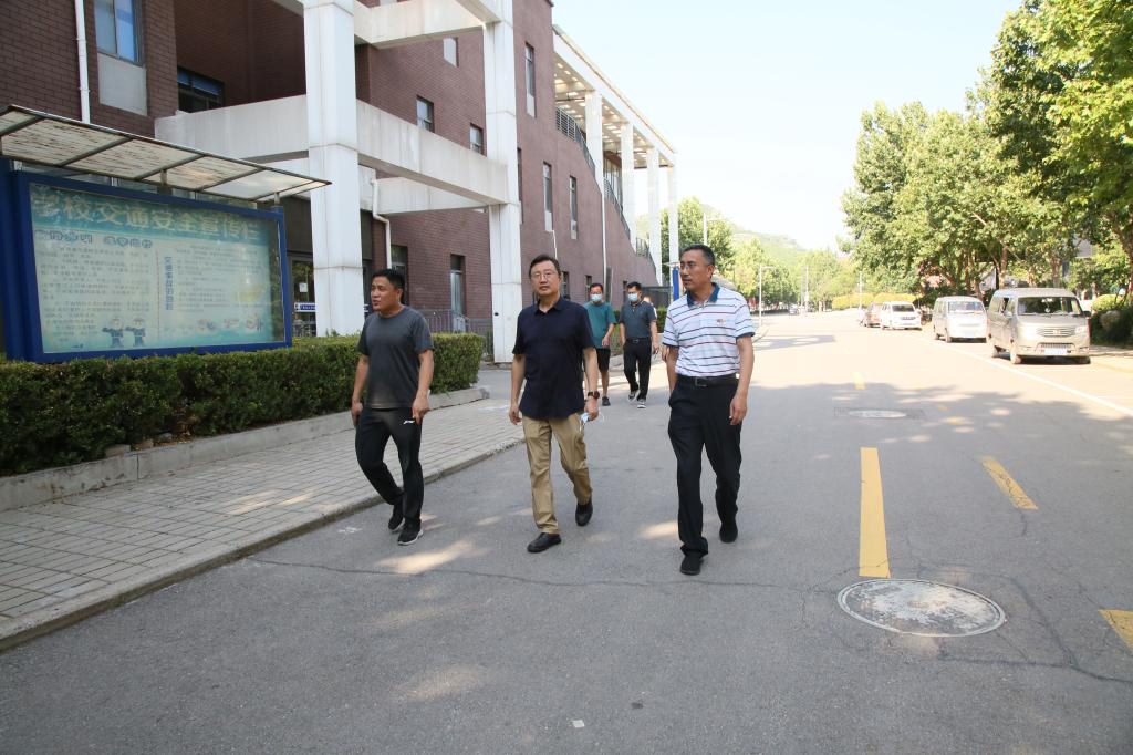 7月8日,学校党委书记何思清、副院长韩世春深入校园建设及修缮工程施工现场,检查工程进展情况,走访慰问坚守岗位的一线工作人员。