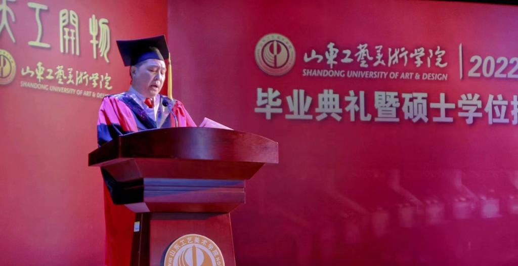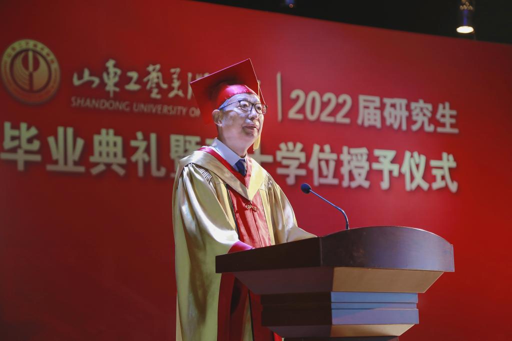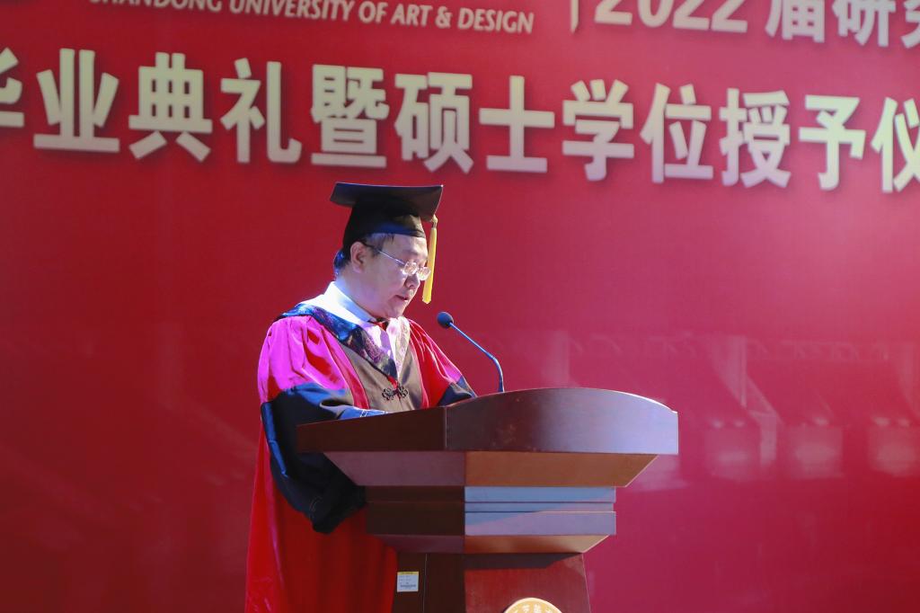 盛夏六月,栀子芳香。6月18日下午,yl8cc永利官网2022届研究生毕业典礼暨硕士学位授予仪式在长清校区数字演播厅隆重举行。学位评定委员会主席、院长潘鲁生,学位评定委员会副主席、党委副书记苗登宇,党委委员、统战部部长孙大刚出席仪式。学位评定委员会副主席、副院长董占军主持仪式。