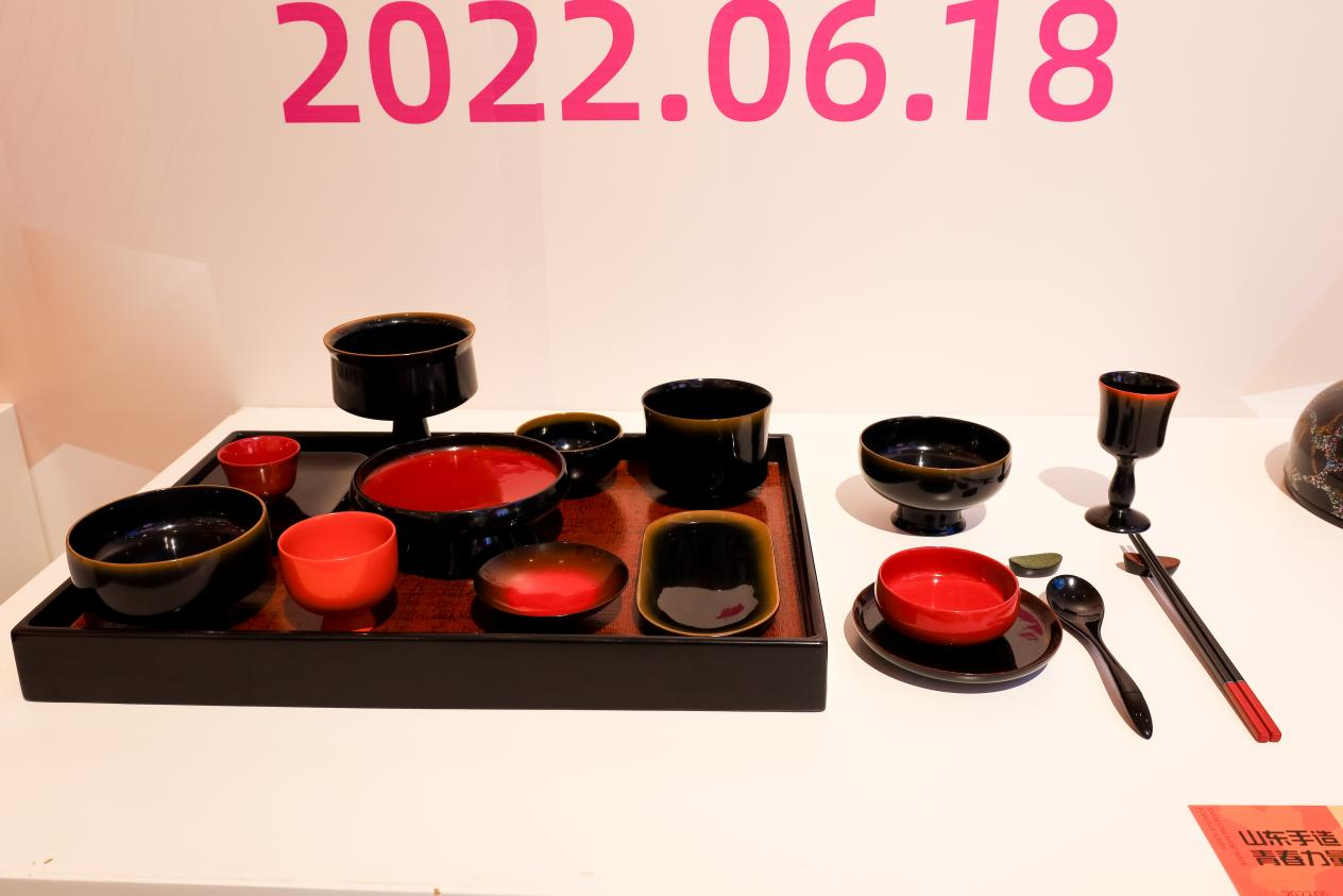 展览现场,白玉刚察看了学校团队创作的漆器艺术作品《合礼之器—大漆饮食具》,指示文创作品要秉承设计服务于生活的创作理念,筑牢民族文化核心价值观体系、构建现代文化产业体系、满足民众美好生活需要、维护文化多样性等方面推动传统文化资源转化与创新。