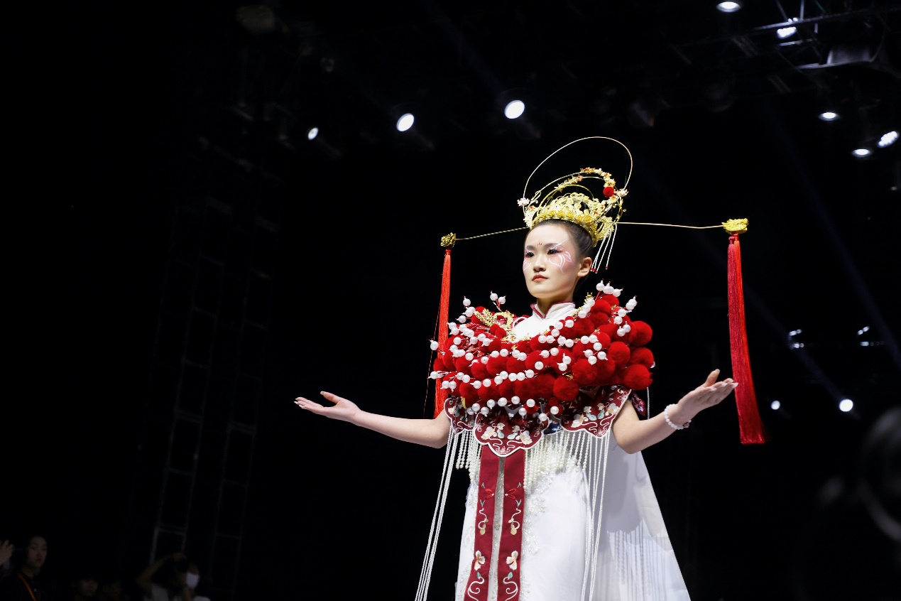 妆扮设计展演呈现的是妆扮设计专业的27套作品,其中2018级毕业设计作品22套,2019级古装手造设计作品5套。此次展演作品由学生手工制作完成,设计师将传统手工艺中的造型元素、工艺语言与现代妆扮艺术设计理念相融合,创作出具有现代时尚感的妆扮艺术,令人耳目一新。个性十足的人物造型,绚丽夺目的服装展示,异彩纷呈的彩绘艺术……把现场观众引入到一个梦幻般的奇妙世界。