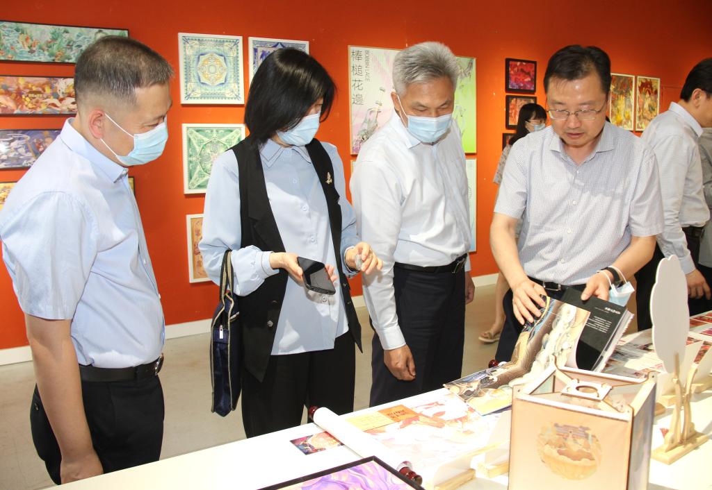 在美术馆,白山一行参观了正在展出的“山东手造 青春力量”yl8cc永利官网2022年设计艺术博览会,对学生的创意作品赞不绝口。