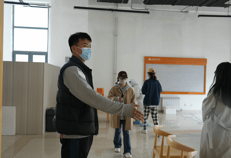 每次核酸检测的时间并不完全固定,侯老师总是细心地在一切准备就绪后通知大家,尽量不耽误师生地课程。下午1点钟,在检测现场,侯祥老师开始与医务工作人员对接、维持秩序、核查名单,确保不漏一人。