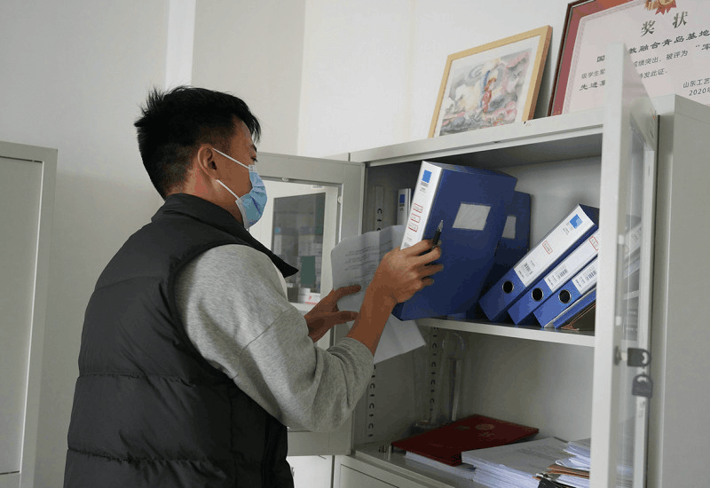 下午5点,侯祥回到办公室,把当天的疫情防控相关资料存档,并确定明天核酸检测的人员名单。