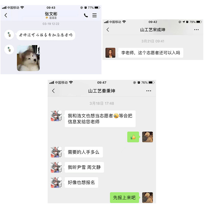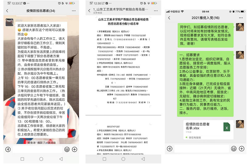 “我申请报名!”“我要参加!”志愿者招募的通知发出后,同学们纷纷挺身而出,积极报名志愿者,志愿者微信群瞬间满员,特殊时期,他们展现出超高的主动性与责任感,为学校战“疫”注入了一股青春暖流。