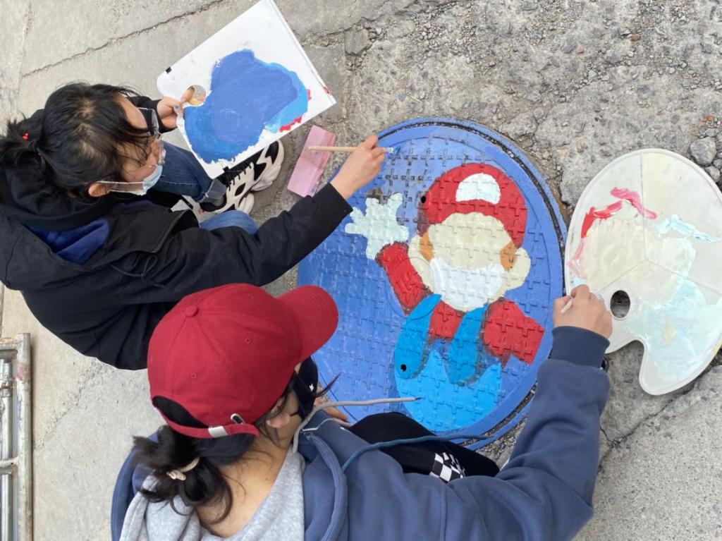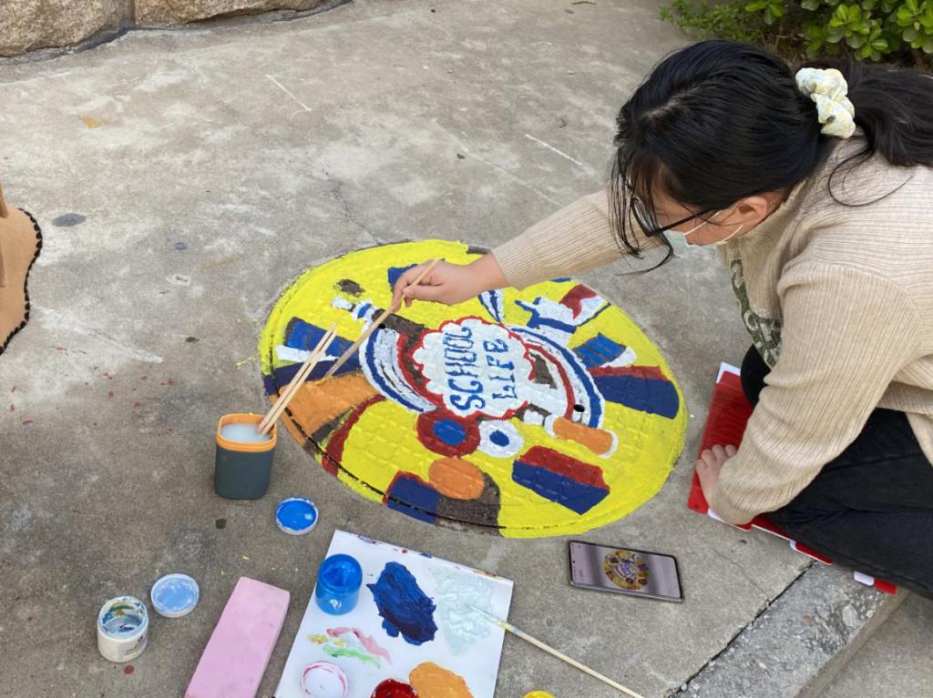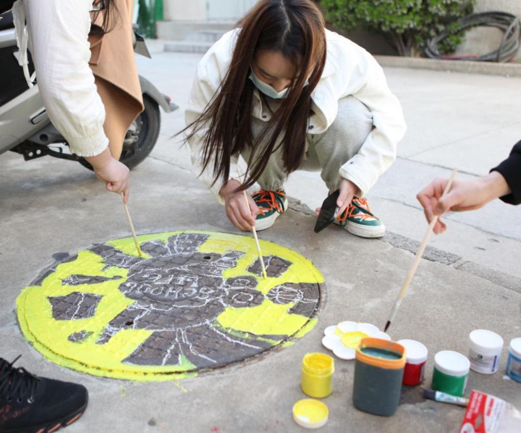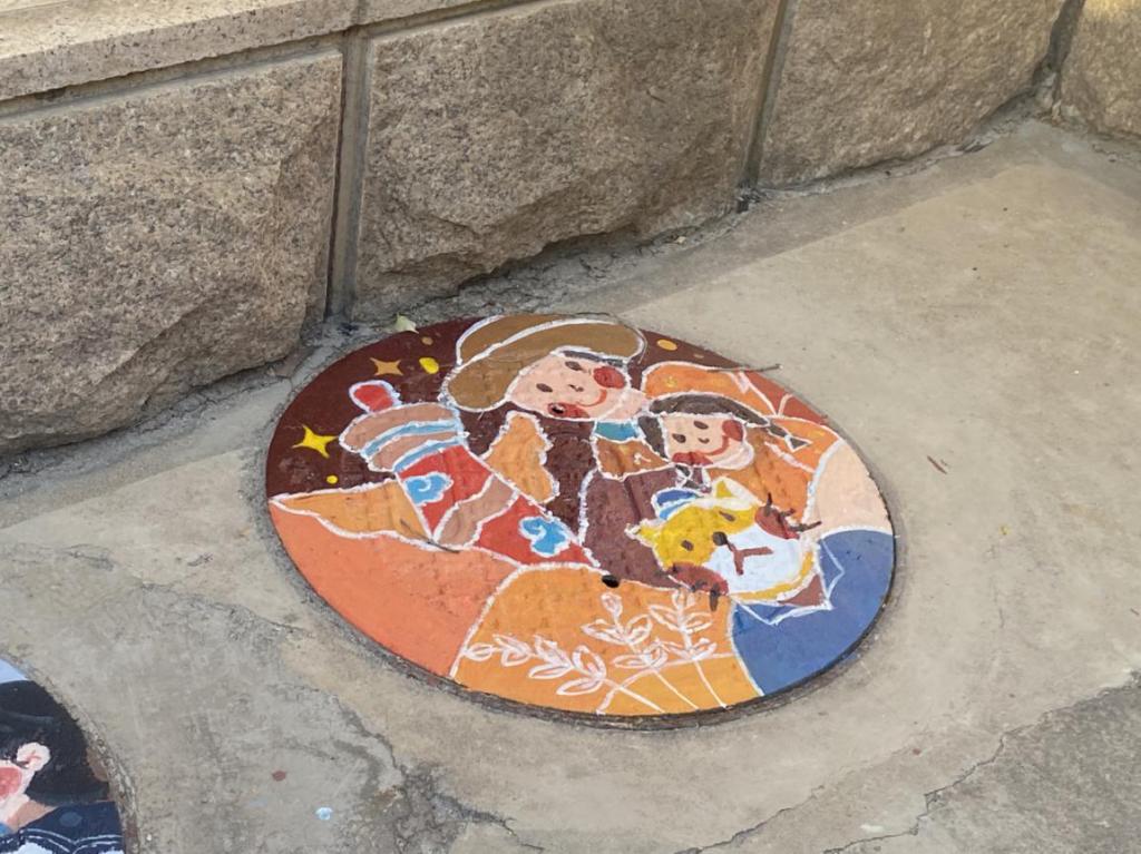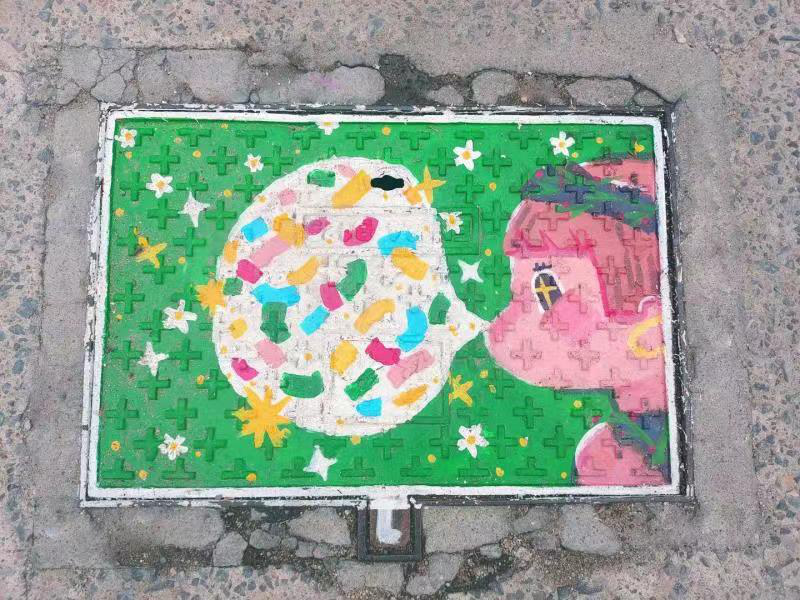 美丽的图案跃动于井盖之上