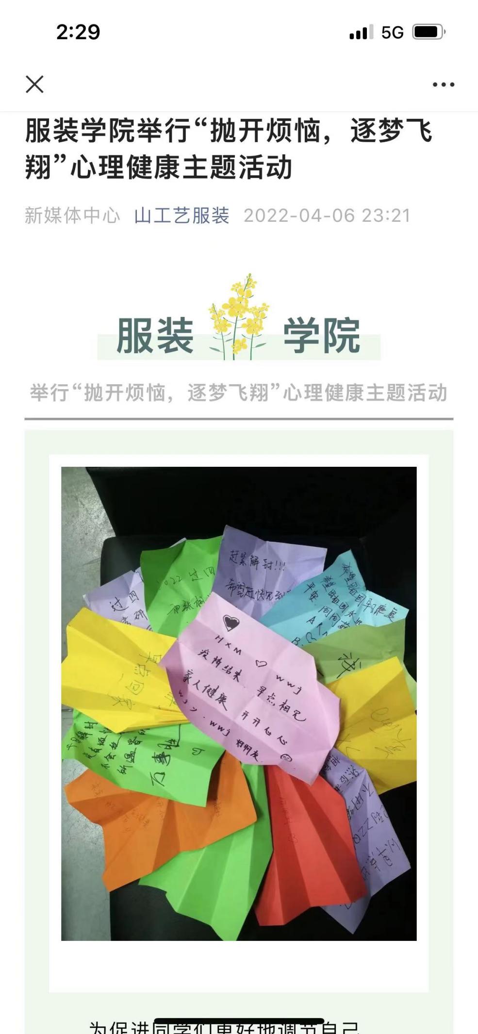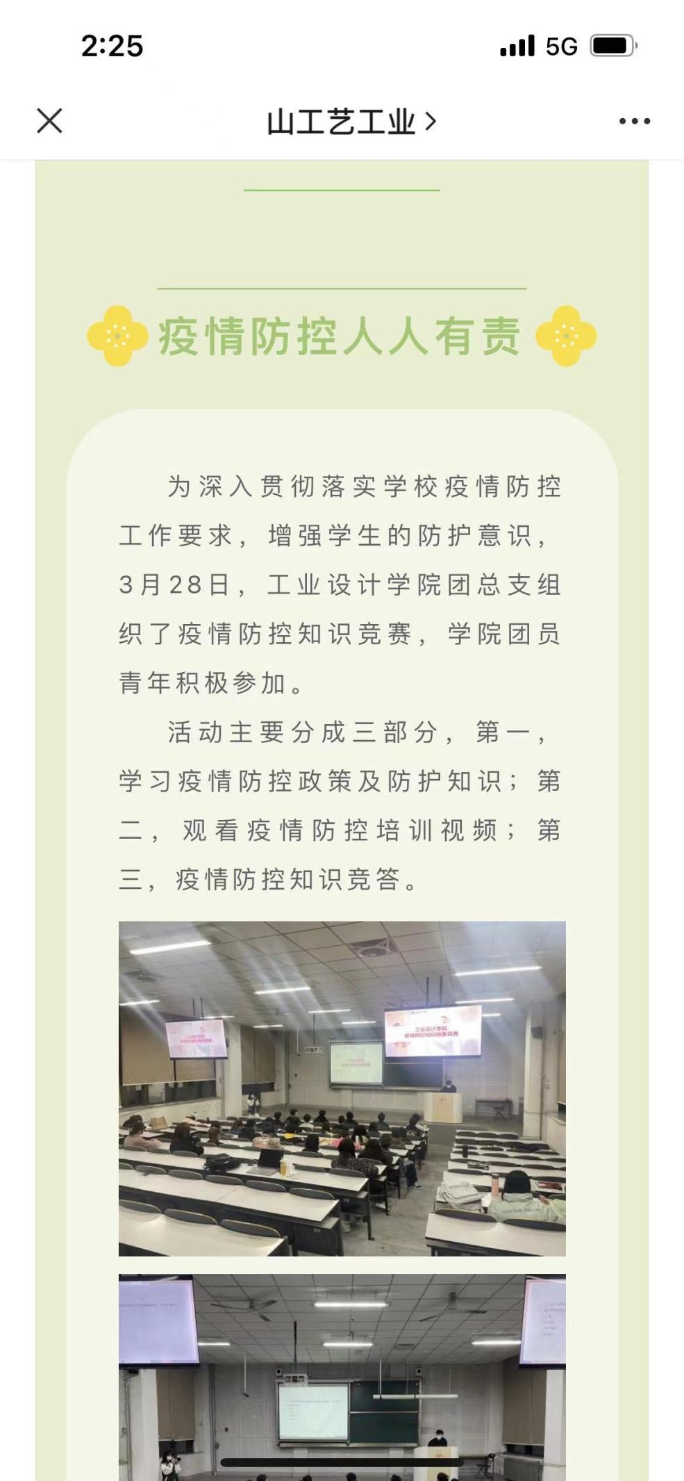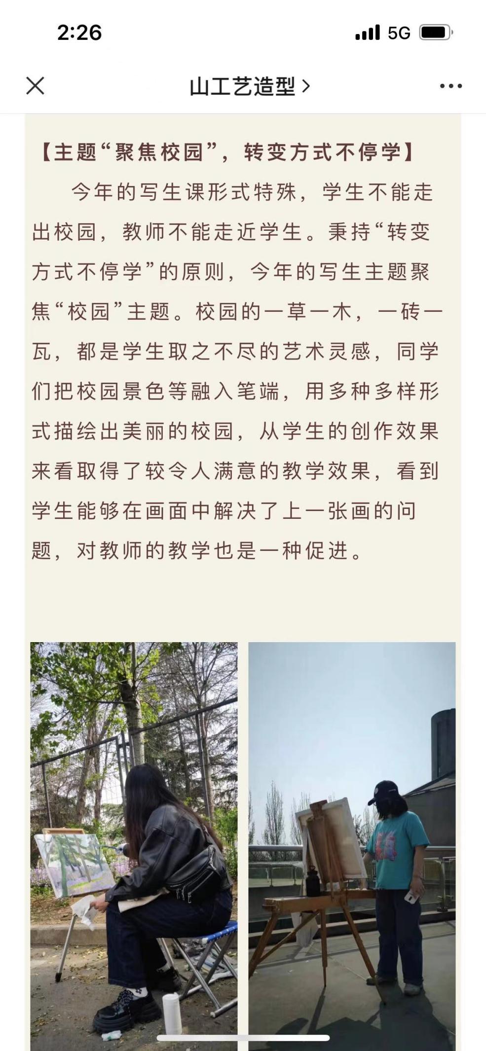 学校封控期间,辅导员积极组织同学们开展“致敬每一个坚守的你,我们有‘画’对您说”“春天,在风筝的斑斓里”“挥拍!让我们击走疫情”“露天座谈会、架起连心桥”“疫情防控知识竞赛”“宿舍装饰大赛”“抛开烦恼,逐梦飞翔”“画说校园”“漫话防疫,为爱加油”“考研经验交流会”“家长进课堂”等一系列活动。引导学生积极参与拍摄《爸妈,我在山工艺挺好的》《防疫手势舞》《春已至,温暖就在眼前》《你安好,我无恙》等视频,传递温暖与感动。
